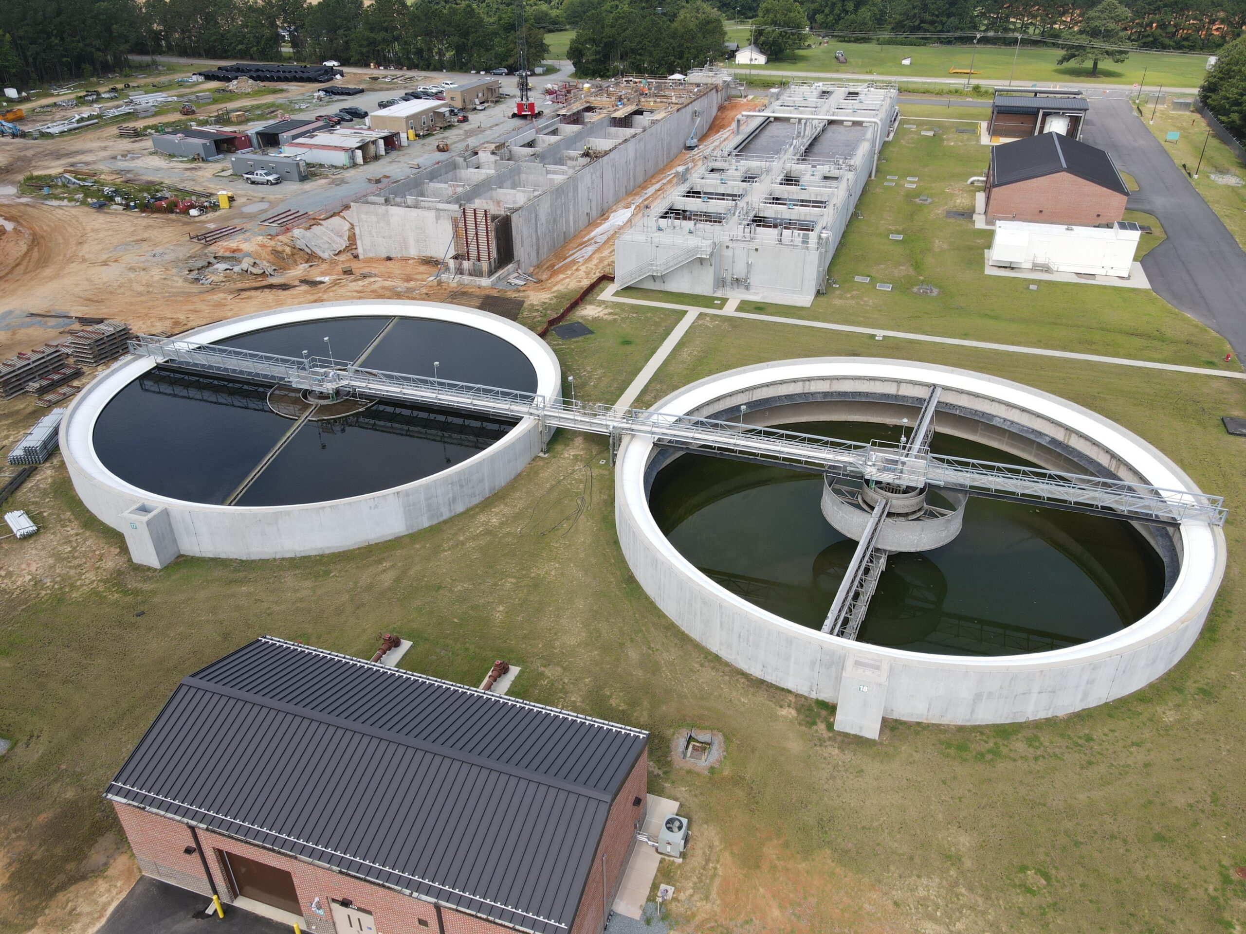 Expansion of Johnston County’s existing 4 MGD Wastewater Treatment Facility to an 8 MGD average flow WWTF. This phase of construction consists of (2) new BNR Basins, new Recycled Water Ground Storage Tank, new RCW Pump Station, new RCW Electrical Building, 54″ buried yard pipe, adding Centrifugal Blower and all associated piping to existing Blower Building, and adding new chemical pumps to existing Chemical Facility.